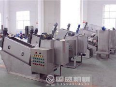 疊螺汙泥脫水機是由兩大部分組成,一個是攪拌混合槽,另一個是脫水螺旋軸。攪拌混合槽簡